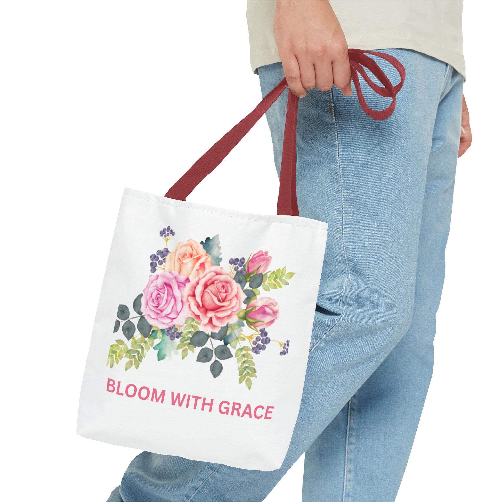 Floral Tote Bag - "Bloom with Grace" - Cute Shopping Bag, Eco-Friendly Tote, Spring Gift, Reusable Grocery Bag, Flower Lover Gift